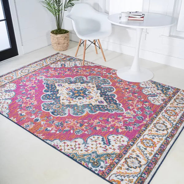 Boho chic in a color palette that would suit an urban retreat or beach bungalow, the modern coloration of this classic design is a statement maker in any space. Power loomed using the softest polypropylene available, its durability matches its beauty. Try it in a living space for added interest, or in a bedroom to mitigate noise and add a cozy feel.