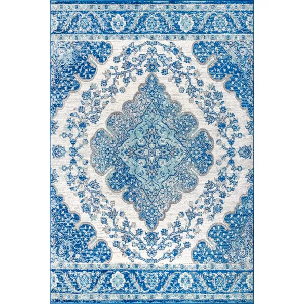 • Combining tones of blue, aqua and gray, this rug is a versatile addition to any color scheme