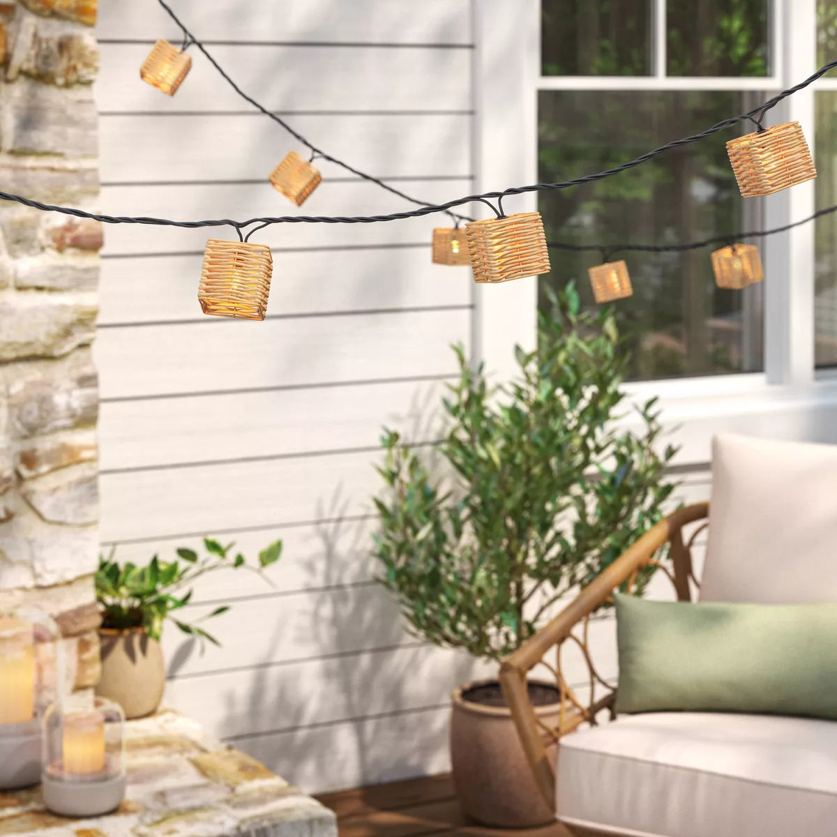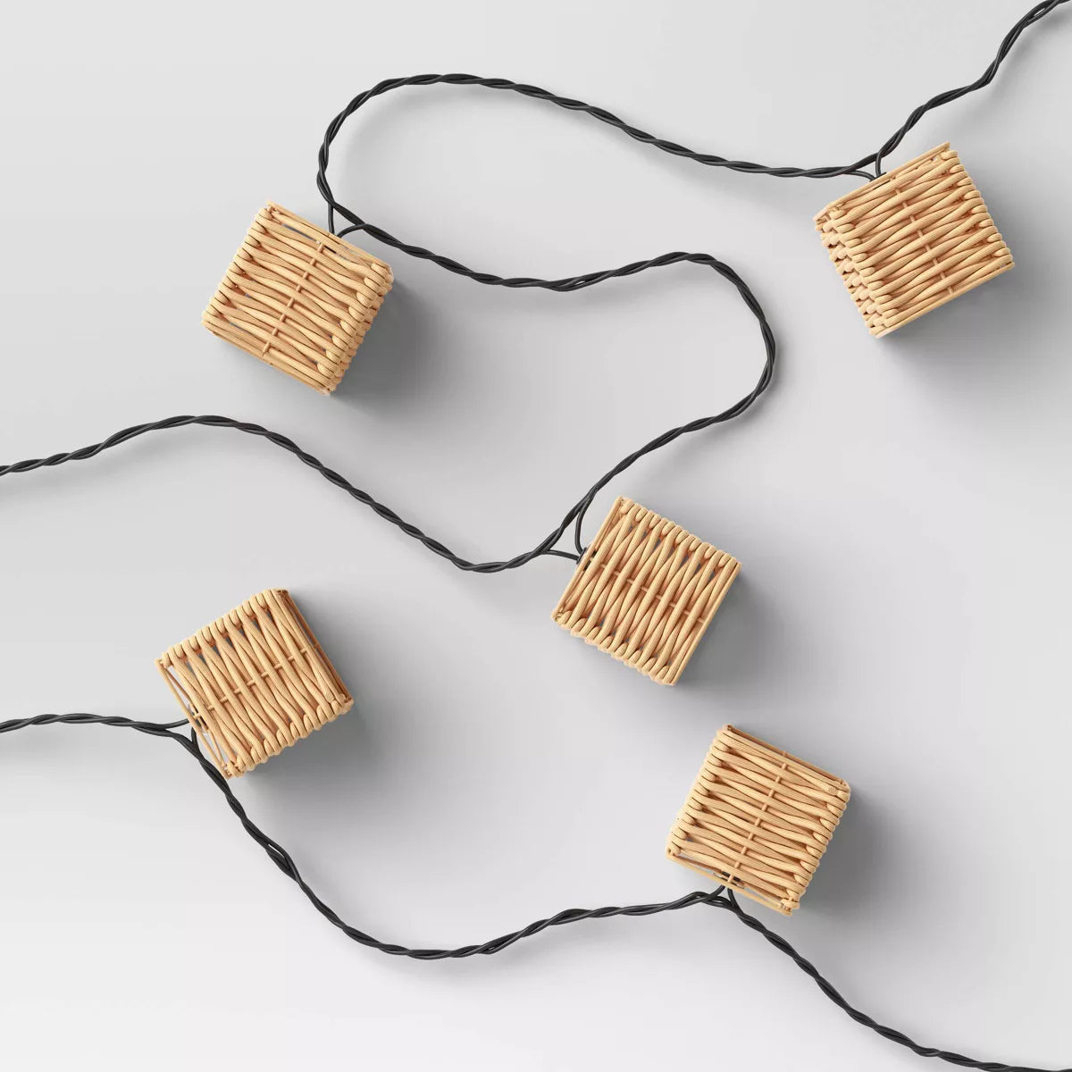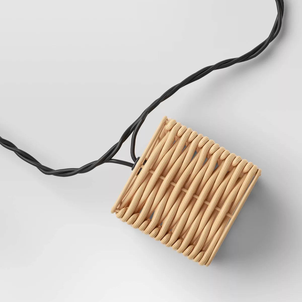 Transform your space with the inviting glow of these 10-Count LED Mini Woven Resin Wicker Indoor Outdoor Lantern String Lights from Threshold™. Featuring a black plastic cord strung with ten clear bulbs within brown plastic wicker woven shades, these mini string lights will brighten up the inside or outside of your house with a breezy look. Drape them in your living or dining room or hang them along the edges of your patio or deck to create a warm and welcoming ambiance.