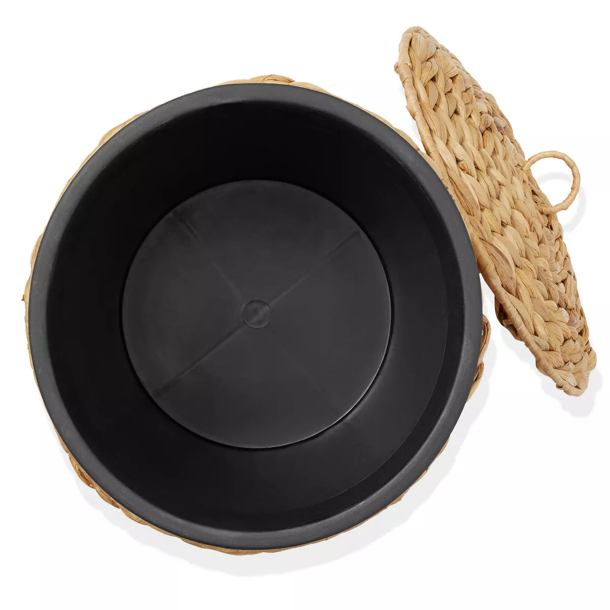 This elegant trash can complement many decor styles ranging from boho, to farmhouse, to traditional, or coastal.