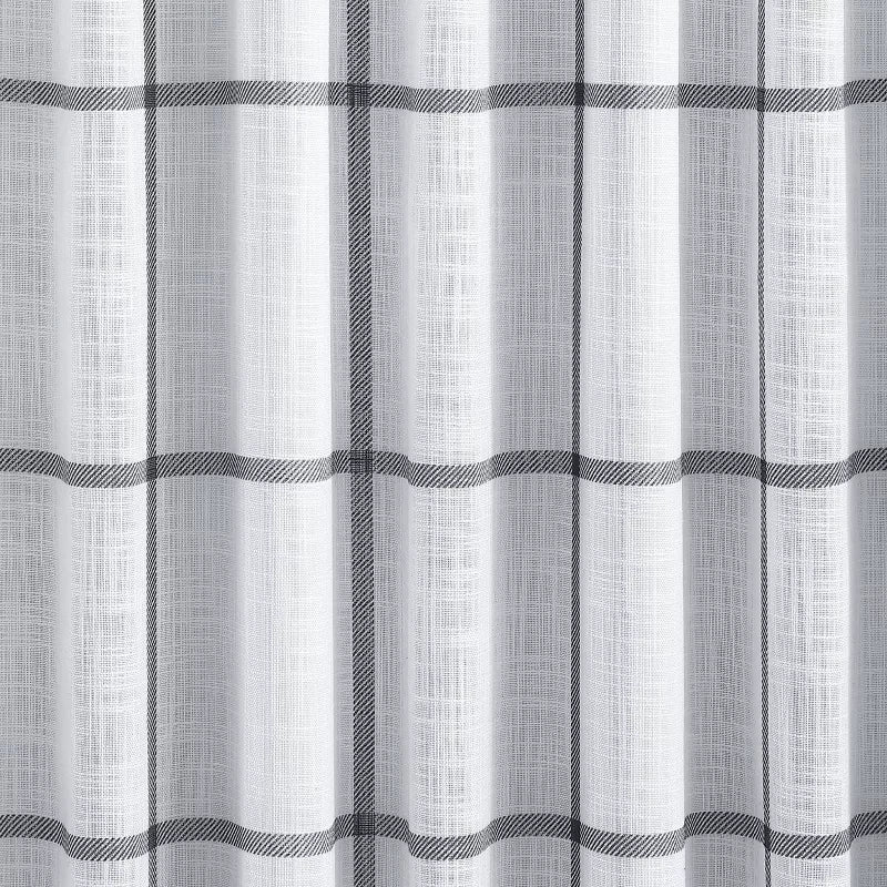 Windowpane print against textured backdrop creates a classic aesthetic