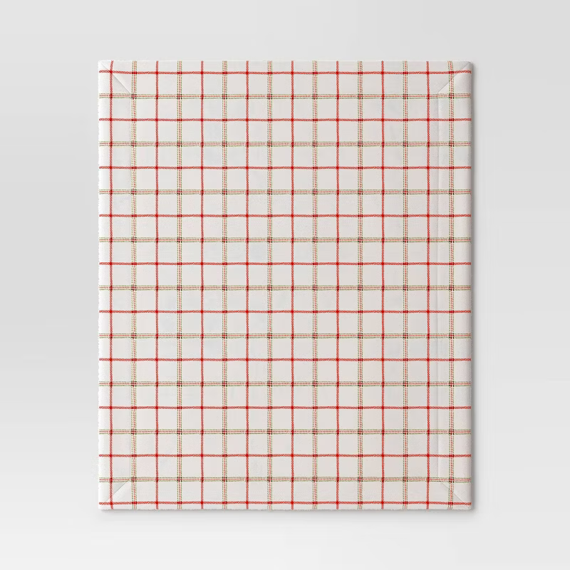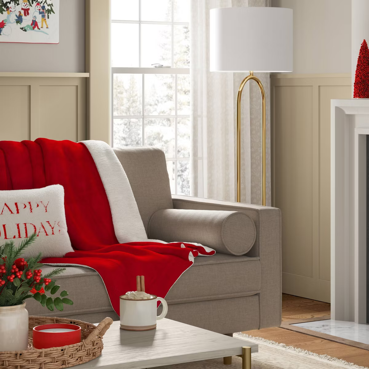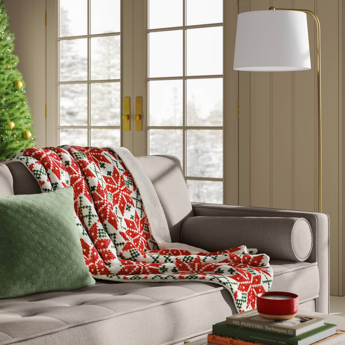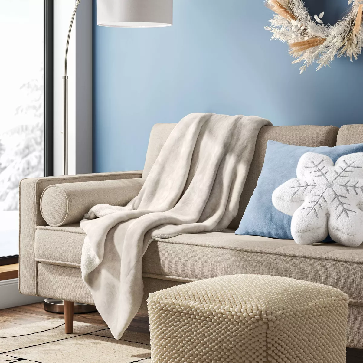 The Plush Throw Blanket with Faux Shearling Reverse from Threshold™ makes a great layering accessory for the cooler months. This plush throw blanket showcases a classic knitted design with faux shearling reverse that offers a soft and cozy feel, making it great for enveloping yourself during holiday get-togethers or movie marathons. This throw blanket adds a festive finish to your space. Toss it on your sofa or armchair and pair it with other throw pillows to offer extra style.