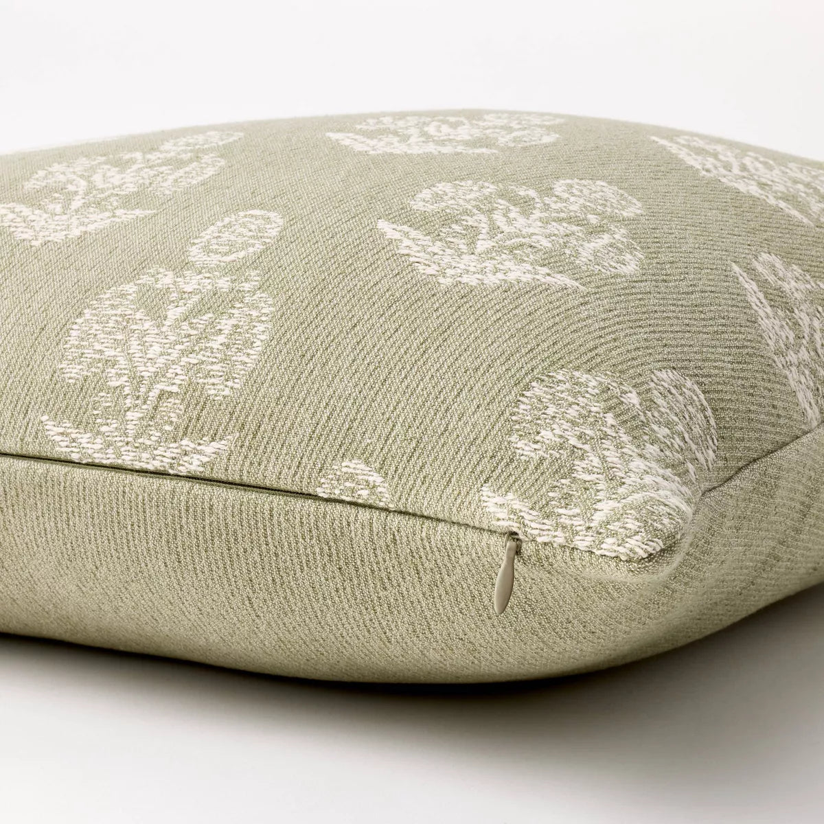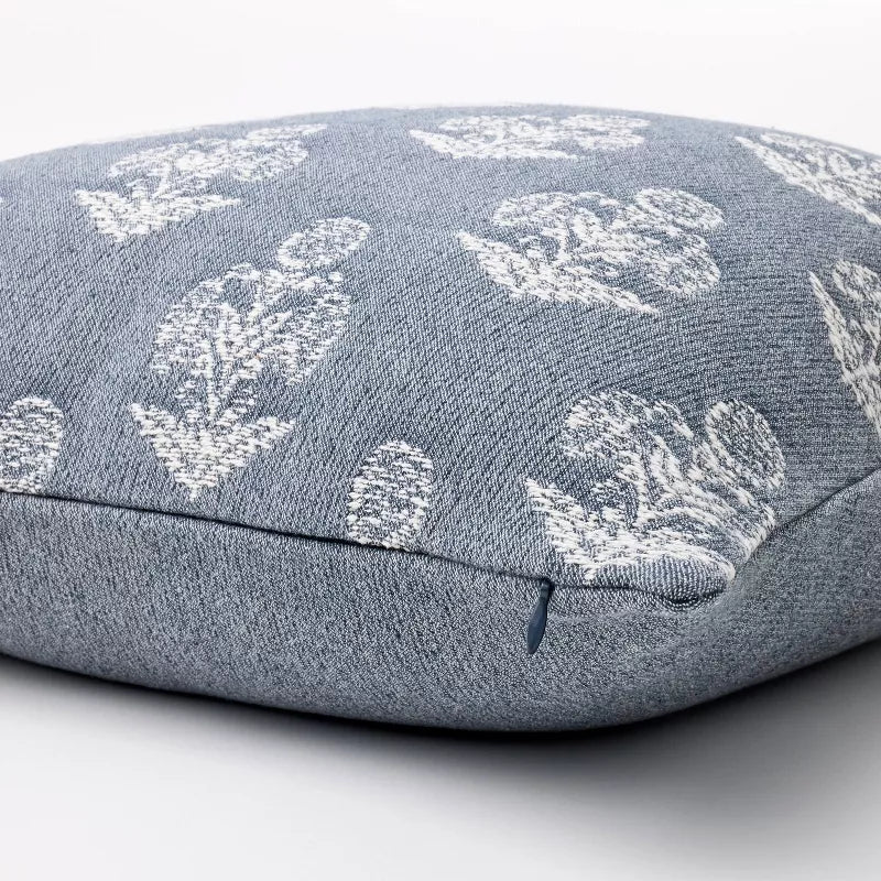 Elevate the aesthetic of your seating arrangement or bedding with this Woven Block Print Square Throw Pillow from Threshold™ designed with Studio McGee. The jacquard throw pillow is decorated with a woven floral black print for a refreshing look. Featuring a 100% cotton exterior and padded interior, the 20-inch square pillow adds the right amount of comfort and style to your space.