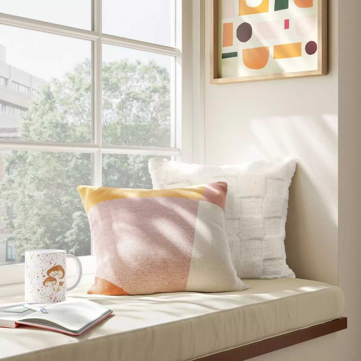 Elevate your living space decor with this Color Blocked Woven Cotton Square Throw Pillow from Room Essentials™. This square throw pillow is made from soft woven fabric with soft filling to add comfort to your favorite seat. Showcasing a colorblock design in multicolor hues, it's sure to elevate the look and feel of your living space.