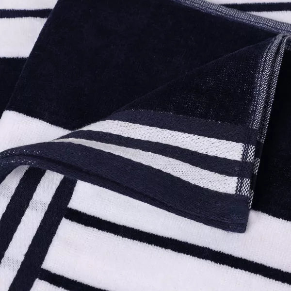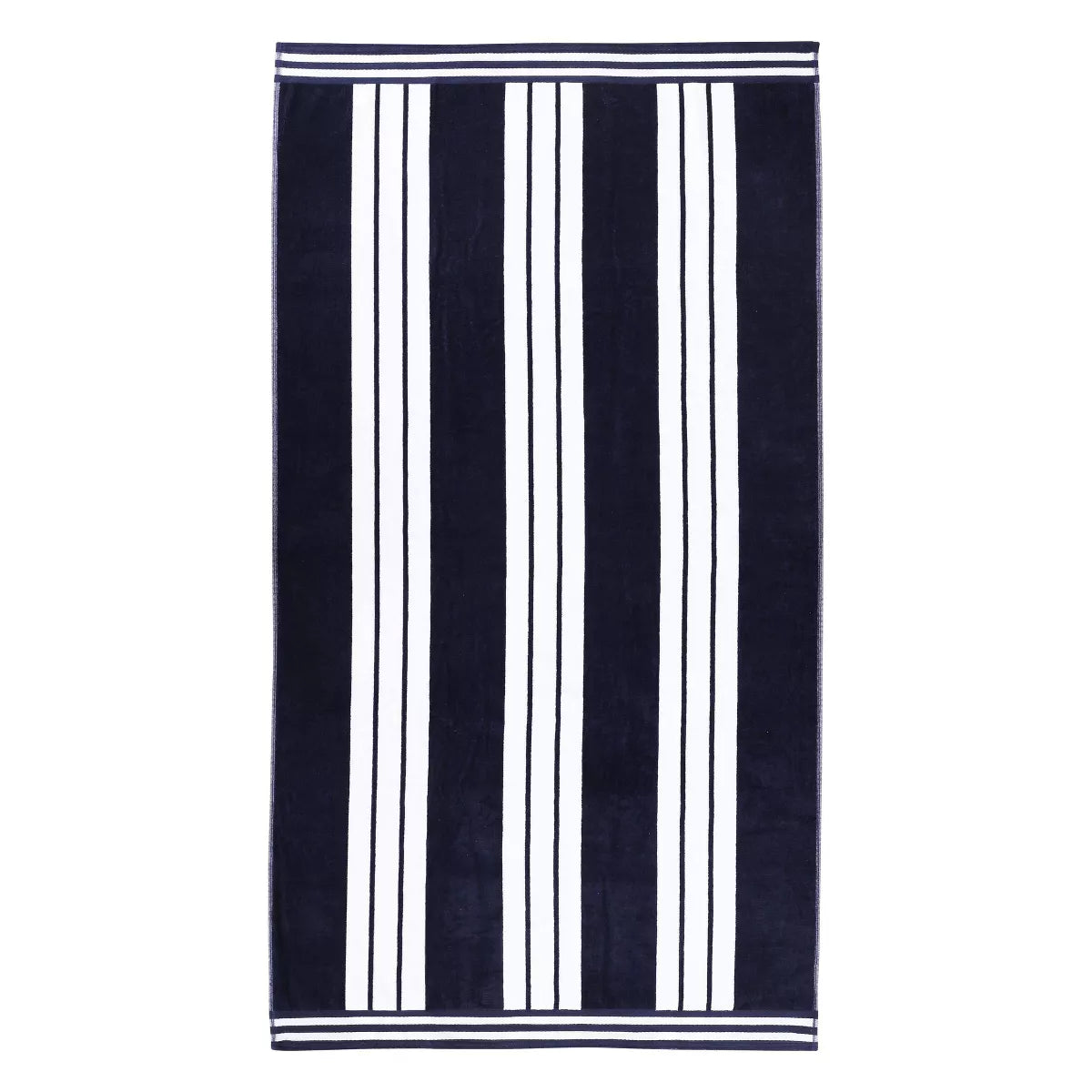 Refresh your beach towels with the vibrant and classic style of the Striped Oversized Cotton Beach Towel by Blue Nile Mills. This cozy, oversized beach towel features a premium Cotton material with a festive stripe pattern that is available in a variety of stylish colors. This design reverses from a soft velour side to an absorbent terry loop side that will keep you warm and dry you off quickly. Ideal for travel, you can carry this towel to the beach, keep it poolside or decorate your bathroom in style. Relax in comfort with this must-have summer accessory