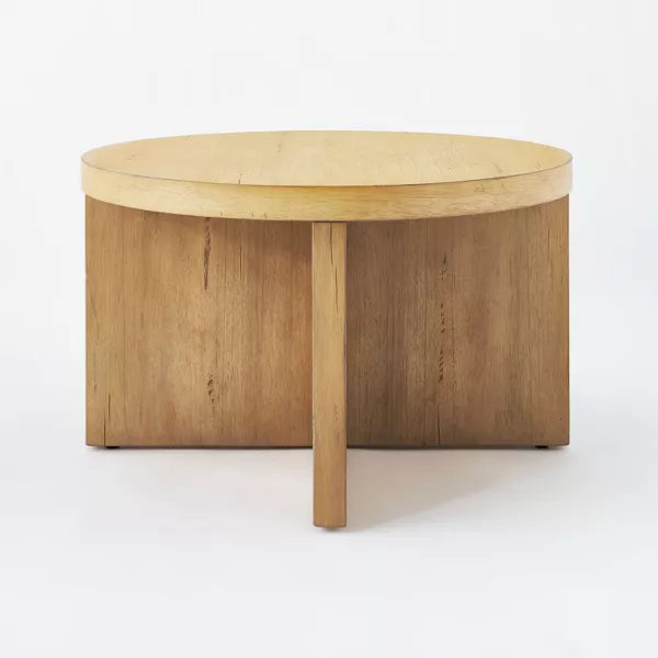 Style up your living room with this Bluff Park Round Wood Coffee Table from Threshold™ designed with Studio McGee. This wooden coffee table features a round tabletop with crisscross legs for simplistic style you'll love adding to your space. Use this round coffee table with the coordinating accent table, and decorate with greenery, books and more for a lively look.