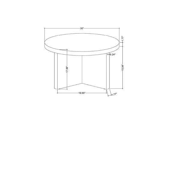 Overall Width: 30 inches Overall Height: 17.99 inches Overall Depth: 30 inches Top Thichness: 1.77 inches Height of Legs: 15.94 inches Leg Thicness: 1.77 inches Overhang of top: 0.24 inches Distance Between Legs: 19.65 inches