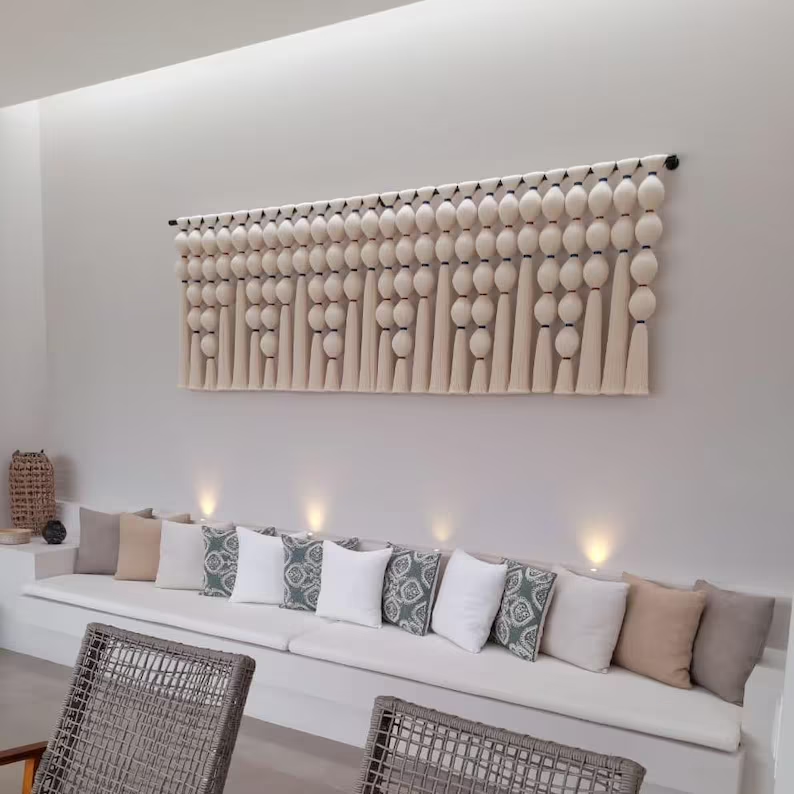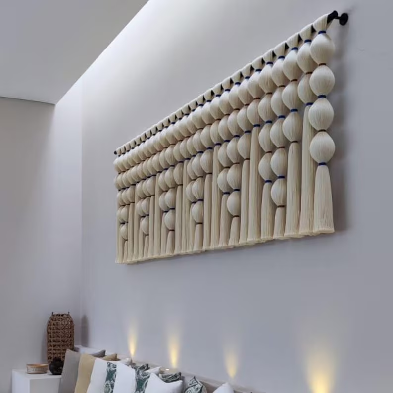 Handcrafted Boho Elegance Elevate your interiors with the Boho Extra Large Mexican Macrame Wall Hanging. Designed with a round sphericity ball tapestry pattern, this oversized décor piece makes a bold statement as a headboard accent, luxury wall art, or bohemian wedding backdrop.