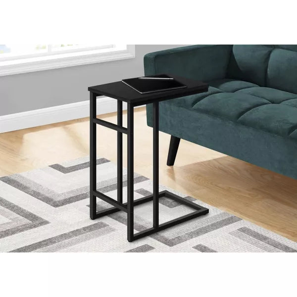 Raise the modern touch of your living space to another level thanks to this Dark Taupe C table supported by a sleek black metal base. Made to support snacks, drinks, a tablet and even some decorations, this C end table slides perfectly under, or next to, your couch. It sits slightly off the ground to prevent damage on your floor. Use it during your favorite movie, for your small laptop/tablet during a study session, or simply as an accent table to display your favorite accessories. This side table blends effortlessly with any other décor in your living room, family room, office, bedroom or den