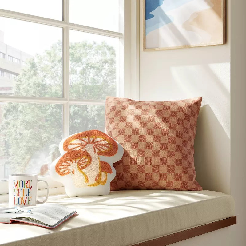 Add a touch of chic style to your home decor with this Checkerboard Woven Cotton Square Throw Pillow from Room Essentials™. This square throw pillow is made from 100% jacquard-knit cotton fabric with soft filling to add comfort to your favorite seat. Featuring a checkered design, this decorative throw pillow instantly elevates your living room decor.