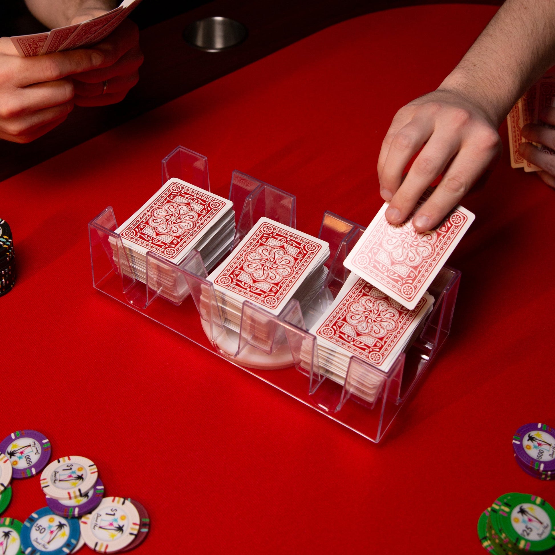 Made of durable, scratch-resistant clear acrylic, these "Elite" card trays feature a proprietary 360-degree swivel for a smooth, consistent spin, providing easy access no matter where your seat at the table is.