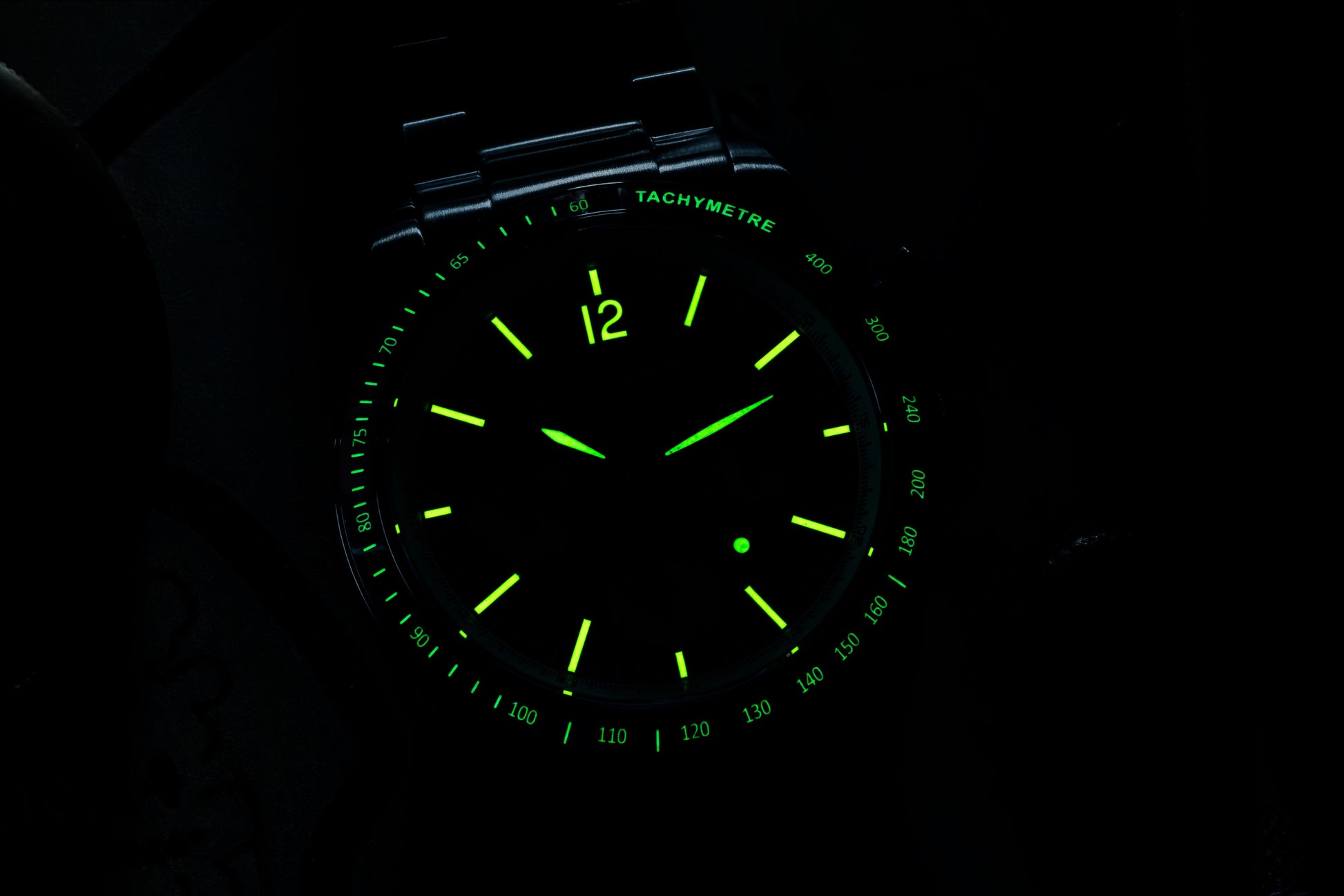 - Ceramic Tachymeter Bezel – Track your speed. Measure your dominance.