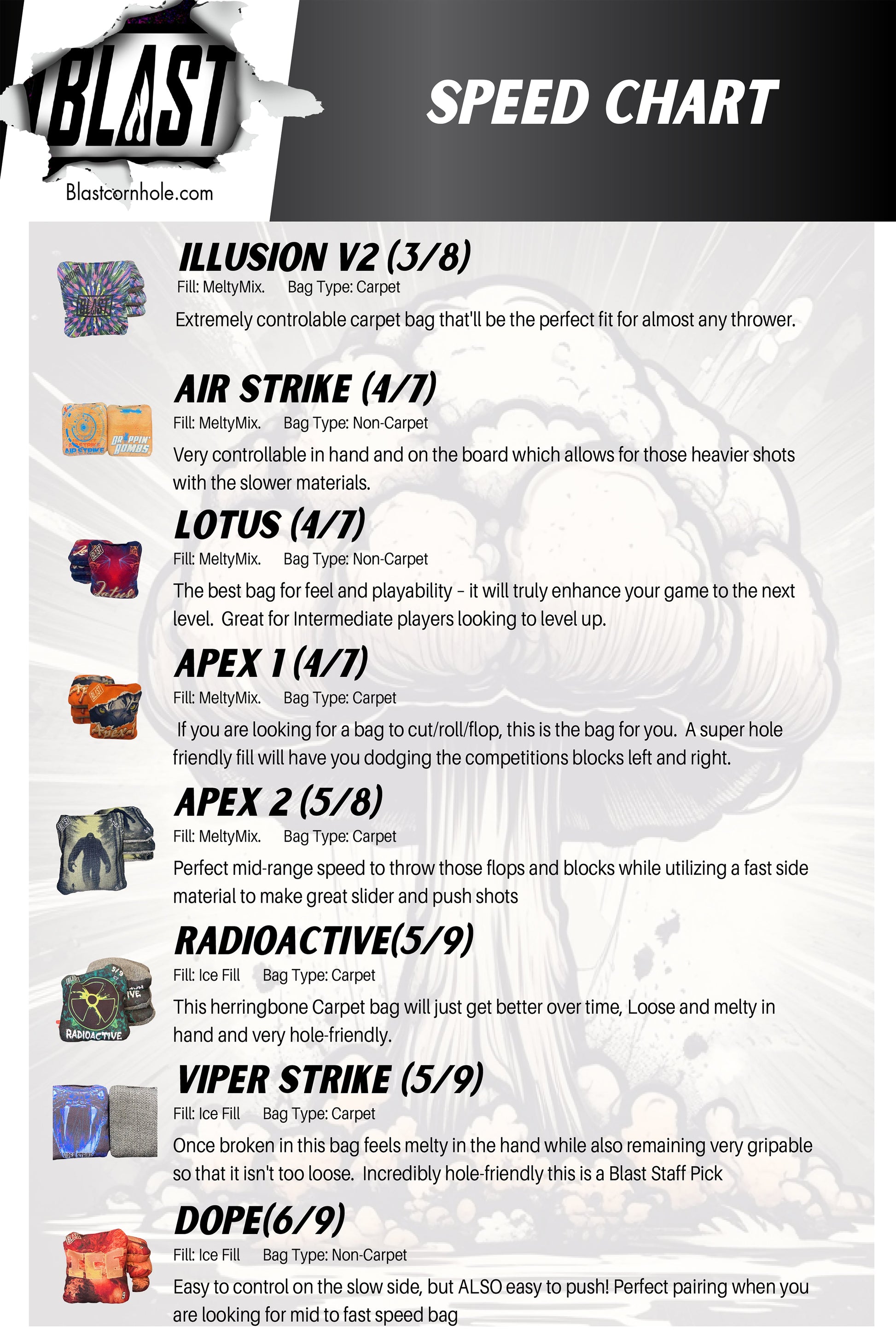 This carpet-style cornhole bag offers exceptional control, making it an ideal choice for players of all skill levels. The slow side is perfect for throwers with a stronger release, helping to reduce speed and prevent bags from sliding off the board. When precision push shots are needed, the fast side delivers smooth, reliable movement up the board.