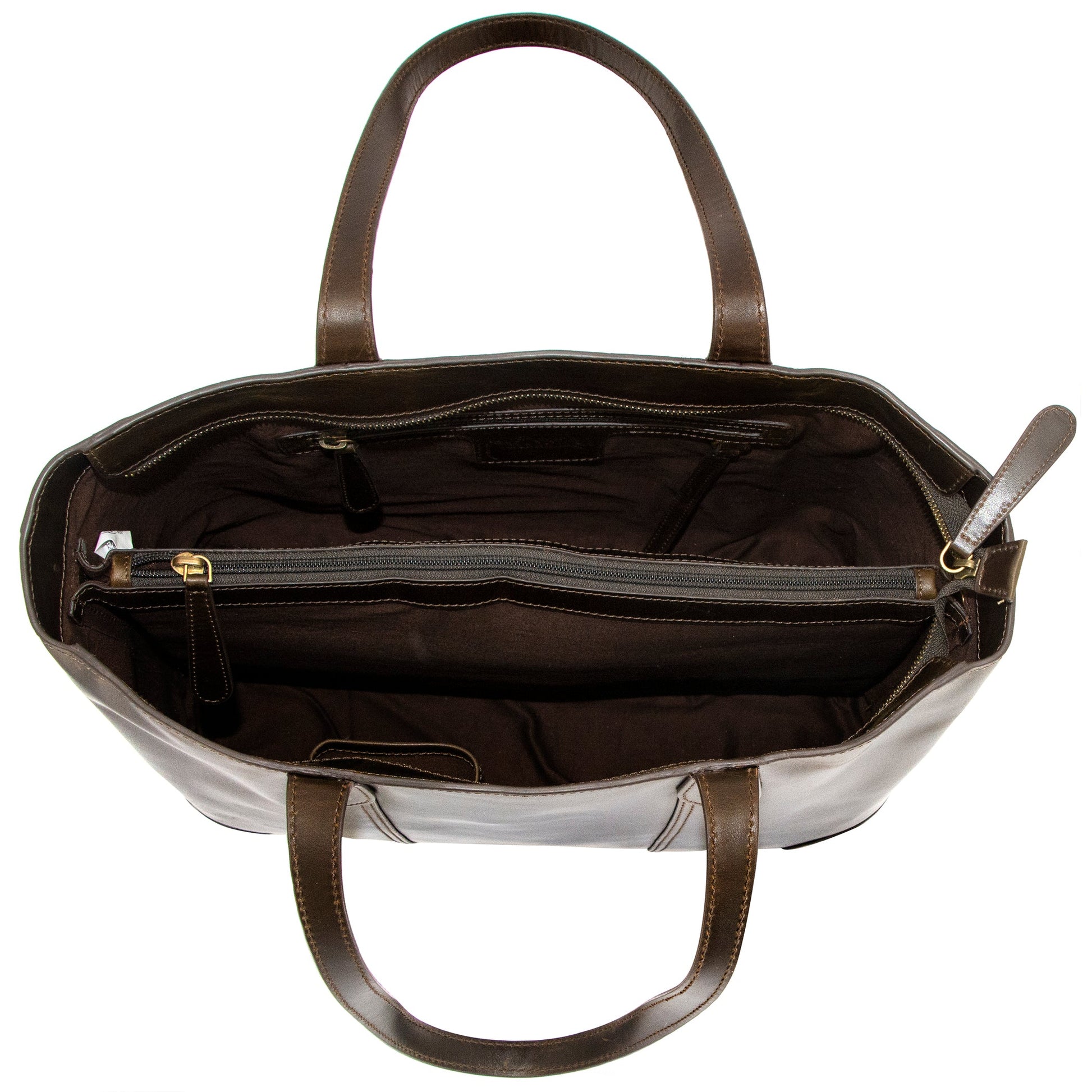 - Italian inspired leather - Antique metal hardware - 12 1/4" height - 15 1/4" width - 10 3/4" strap drop - Four interior pockets - Magnetic snap closure
