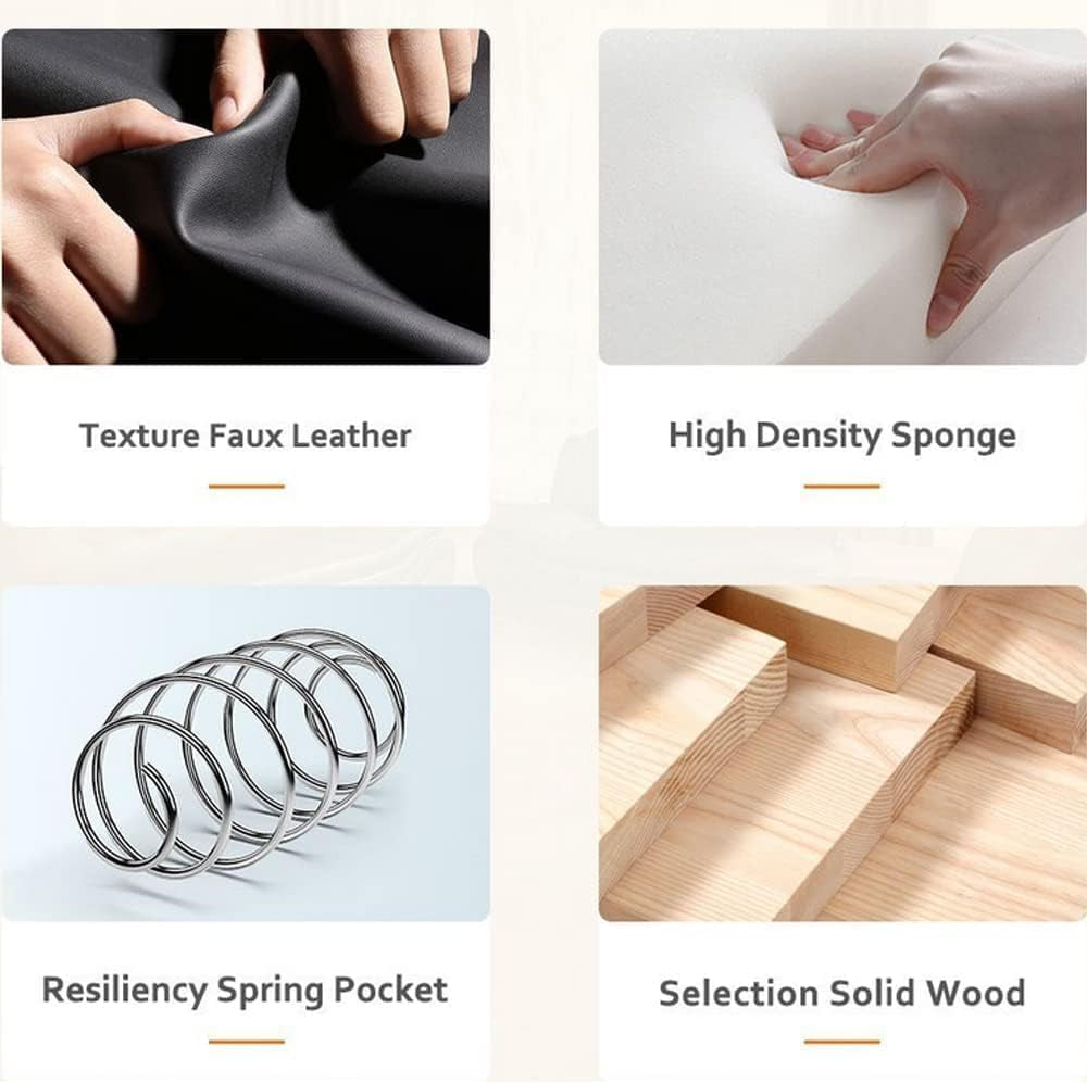 Vegan leather upholstery offers a sleek, easy‑care surface that resists fading and wrinkles for a fresh look with minimal maintenance.