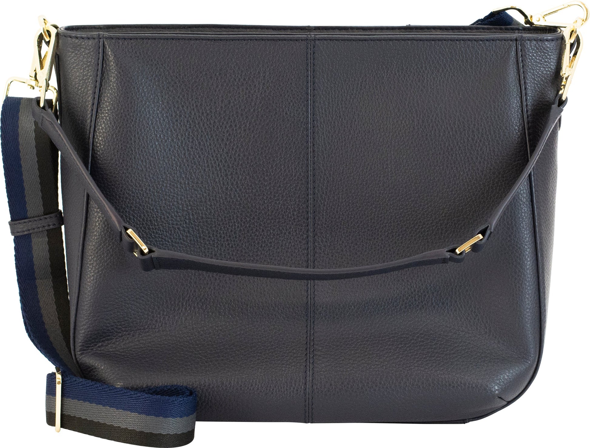 Made from genuine leather in a micro pebble texture accented with gold hardware makes Vida’s timeless silhouette instantly luxurious. With a spacious interior secured with a high-quality top zipper Vida is the perfect companion on any busy day. The slim detachable handle is the perfect length to carry in-hand or over the shoulder but if ever needed can be changed to a crossbody with the included adjustable strap.