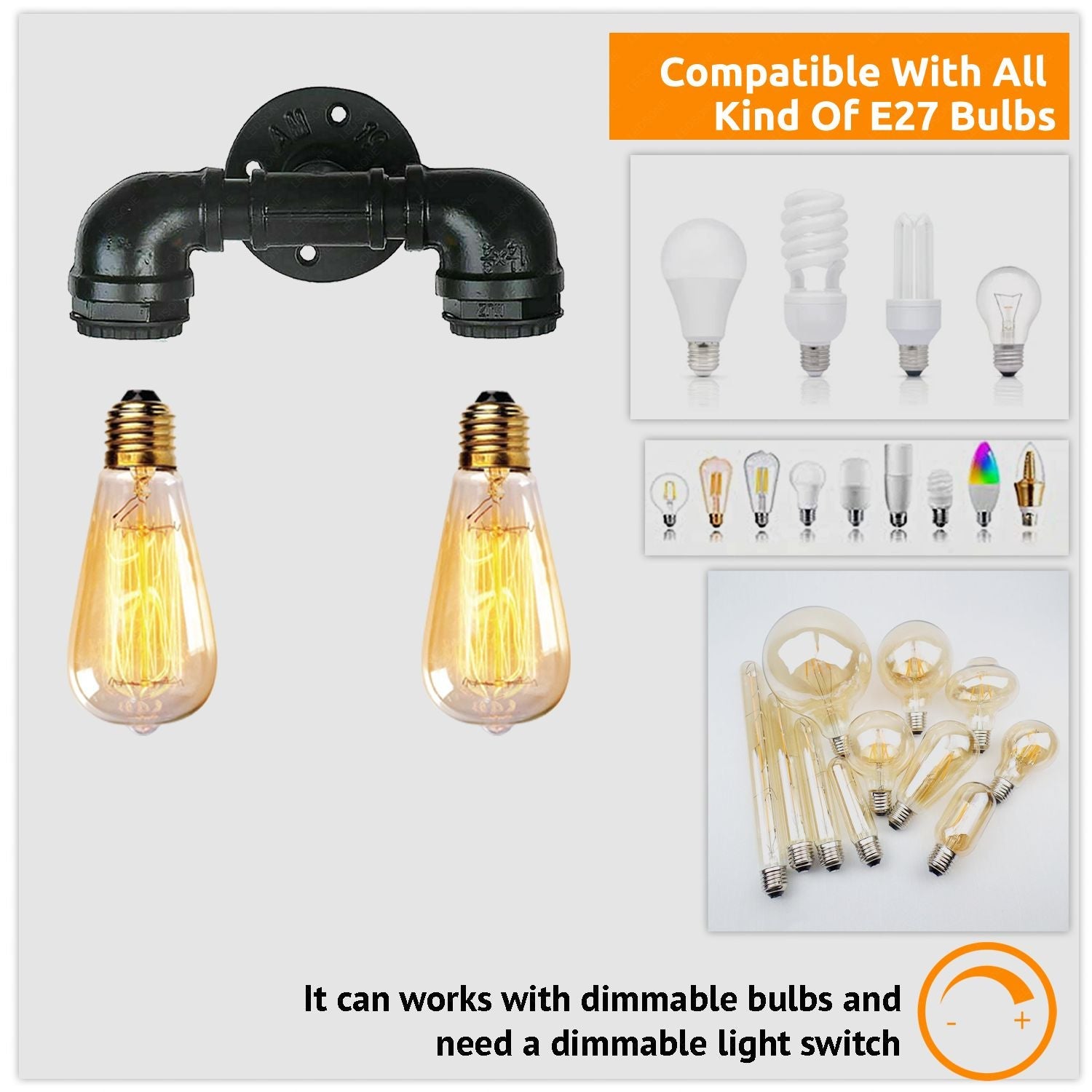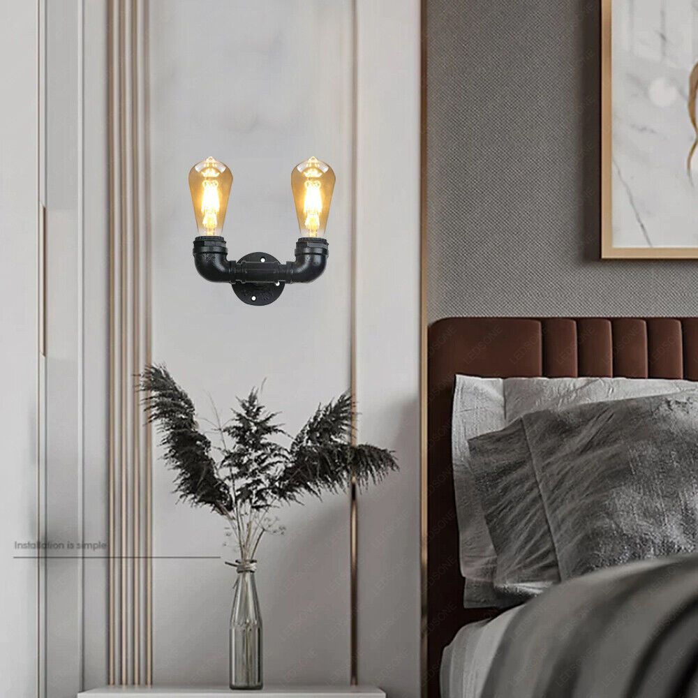 1 x Vintage double head water pipe wall light mount (Bulbs are optional)